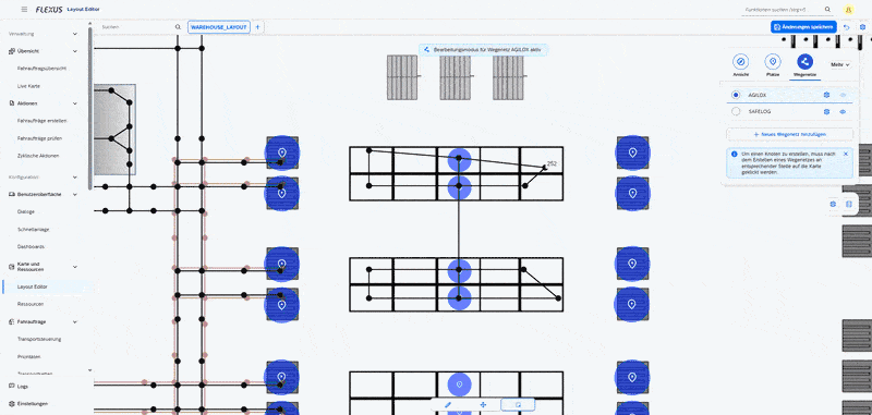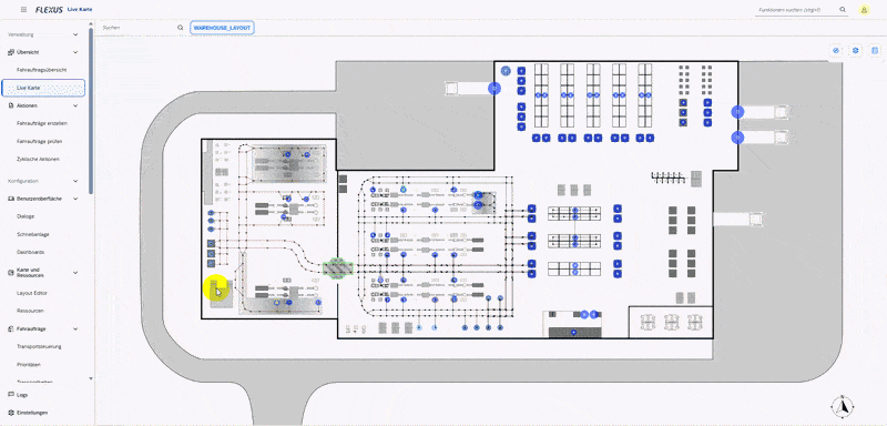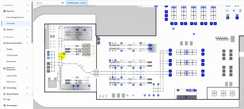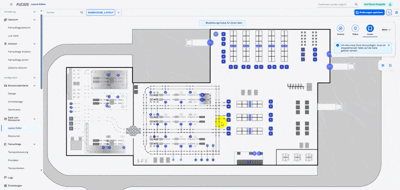 The Layout Editor enables the definition of zones that take area-specific conditions into account. This allows capacity constraints or automation scenarios to be accurately mapped within your layout.
