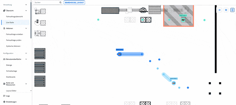 The enhancement of Traffic Management focuses on enabling automated avoidance maneuvers for mobile robots. In the event of traffic blockages caused by mobile robots, so-called deadlocks, the new Traffic Management mechanism detects these situations and automatically resolves them by rerouting the affected tours.